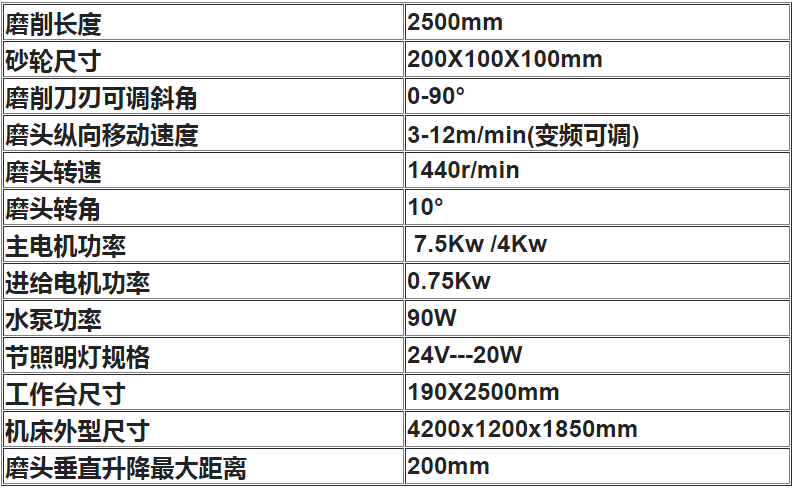 ▲机床的主要技术参数